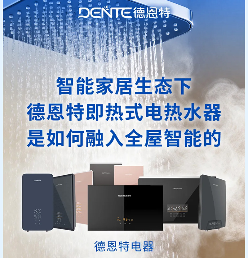 當智能家居從概念走向普及,作為家庭高頻使用的核心設備,電熱水器已不僅是熱水供應源,更是全屋智能生態的重要一環。德恩特,作為快熱式電熱水器國家標準起草單位,憑借全維度的智能設計,讓熱水器真正成為懂你的智慧伙伴。